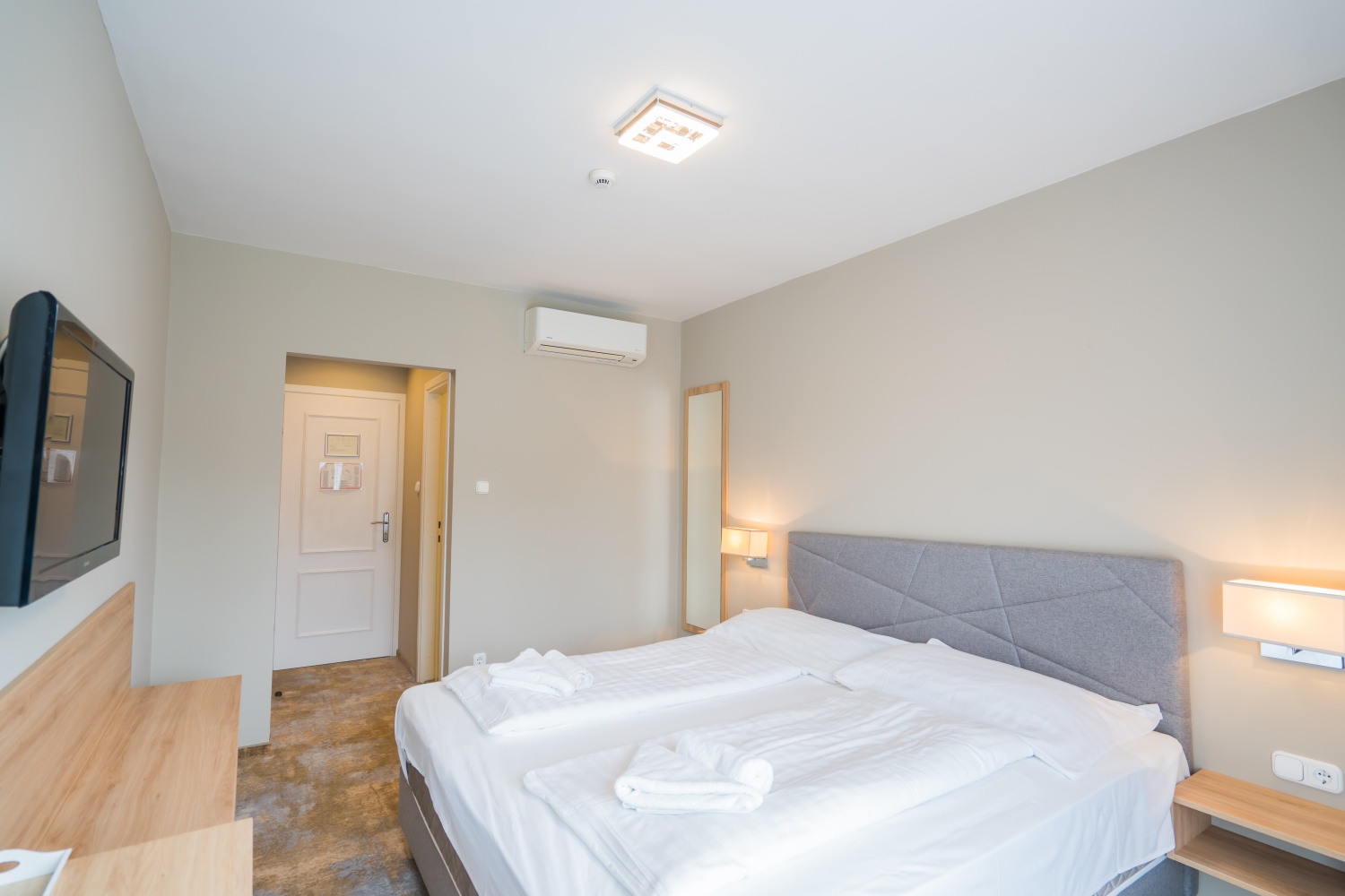 Each standard double rooms with balcony overlook of the pool. This room features a balcony, air conditioning, a fridge and a safe, as well as a flat-screen satellite TV. Guests can also enjoy in their rooms a free Wi-Fi.